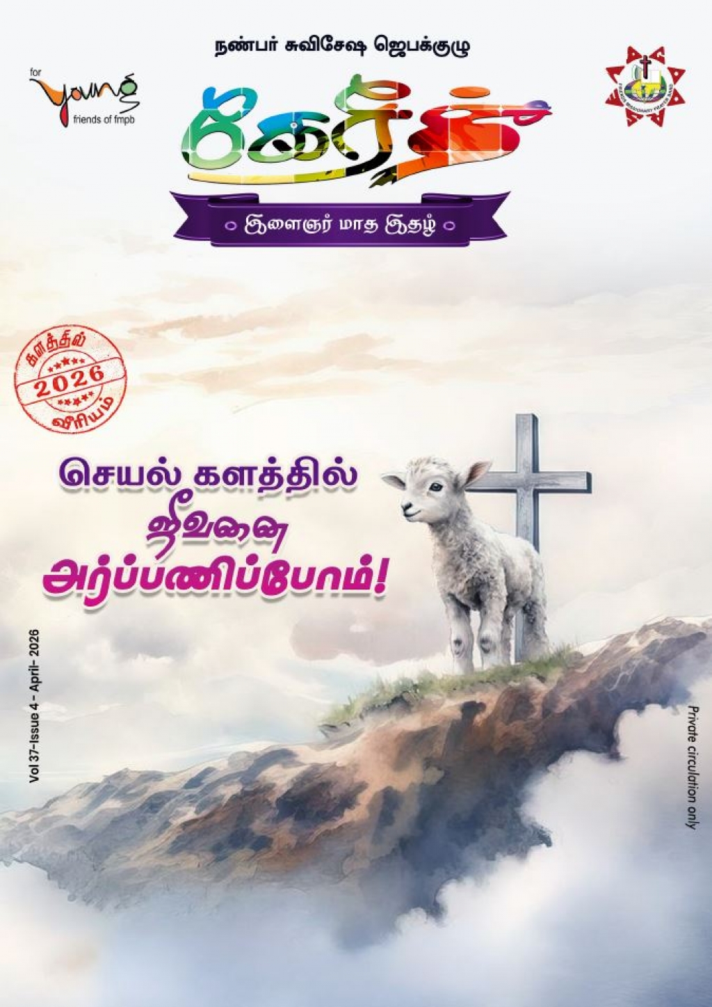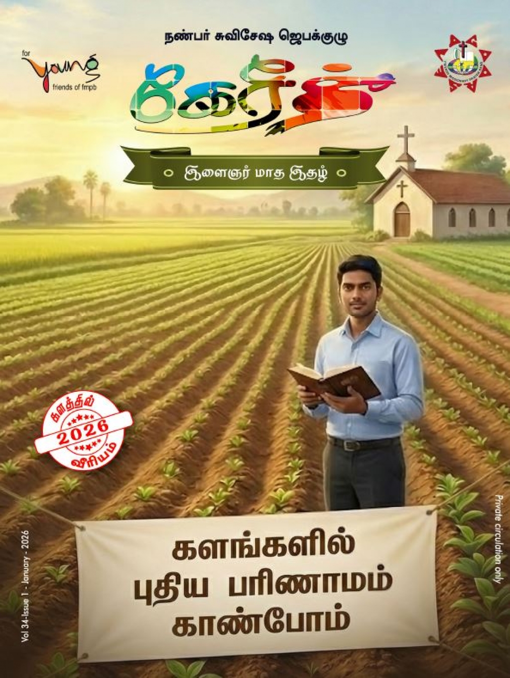 ஆதலால் இவ்வருடத்தின் முதல் இதழை, களங்களில் புதிய பரிணாமம் காண்போம் என்ற தலைப்புடன் ஆரம்பிக்கிறோம். இவ்வாண்டு பத்திரிகையின் அனைத்து பக்கங்களும் களம் என்பதை அடிப்படையாகக் கொண்டு எழுதப்படுகிறது. இப்பத்திரிக்கையானது வாலிபர்கள் ஜெபக்குழுக்களில் பயன்படுத்தும் வகையில் நான்கு வாரத்திற்கான செய்திகளும், எட்டு பக்கங்களில் ஜெபக்குறிப்புகளும், ஏழு விதமான தலைப்புகளில் சிறப்புச் செய்திகளும் எழுதப்படுகின்றன. இதை ஜெபத்துடனும், கவனத்துடனும் வாசித்து, இயேசு கிறிஸ்துவின் அறிவில் வளர்ந்து, அவருடைய ராஜ்யத்தை கட்டும் மிஷனெரிப்பணியில் முழு மனதோடு ஈடுபடுங்கள். இதை உங்கள் நண்பர்களுக்கும் அறிமுகப்படுத்துங்கள்.